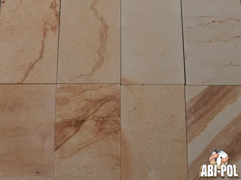 Die intensive Sonne kann die Farbgebung der Platten im Laufe der Zeit leicht verändern. Diese natürlichen Nuancen sind Teil des Charakters von Sandsteinplatten und tragen zu ihrer authentischen Ausstrahlung bei. Die intensive Sonne kann die Farbgebung der Platten im Laufe der Zeit leicht verändern. Diese natürlichen Nuancen sind Teil des Charakters von Sandsteinplatten und tragen zu ihrer authentischen Ausstrahlung bei. Eine Imprägnierung kann die Wasseraufnahme reduzieren und den Alterungsprozess verlangsamen, sie verhindert jedoch nicht gänzlich die durch UV-Strahlung verursachten Farbveränderungen.