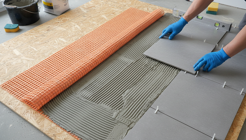 - Entkoppelungsmatte oder spezielle Fliesenunterlage