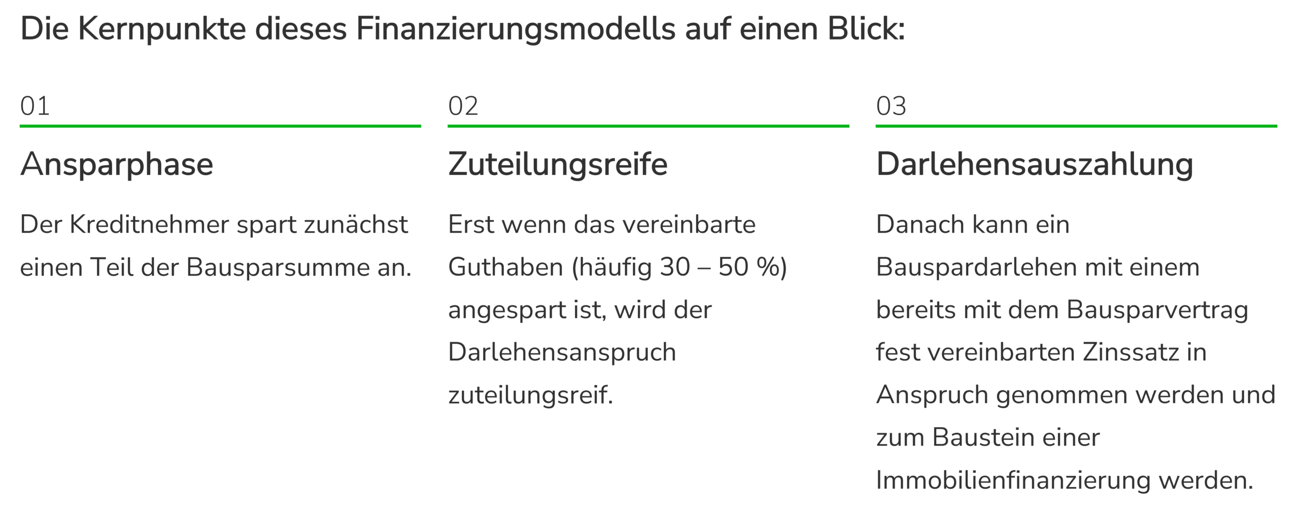 In einer ersten Phase wird über einen definierten Zeitraum Kapital angespart. Erst wenn vertraglich festgelegte Bedingungen erfüllt sind – etwa das Erreichen eines bestimmten Mindestguthabens –, entsteht der Anspruch auf Auszahlung des vereinbarten Darlehens.