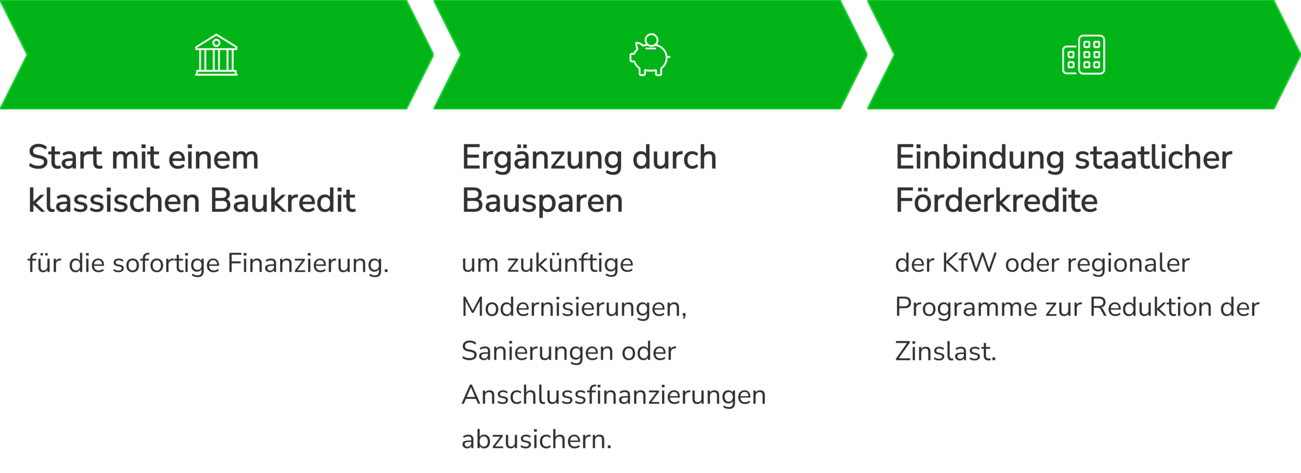 - Eigenkapitalaufbau als Nebenprodukt: Durch das Ansparen entsteht schrittweise Eigenkapital, das später wertvoll für andere Finanzierungsteile ist.