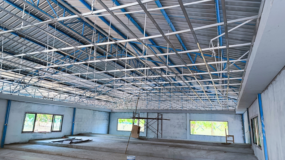 Dachkonstruktionen: Hallendächer können sowohl flach sein oder als Satteldach konzipiert. Flachdächer sind kostengünstiger und lassen sich einfacher Warten. Ein Satteldach hat den Vorteil mit einer besseren Entwässerung und einer angenehmen Optik.